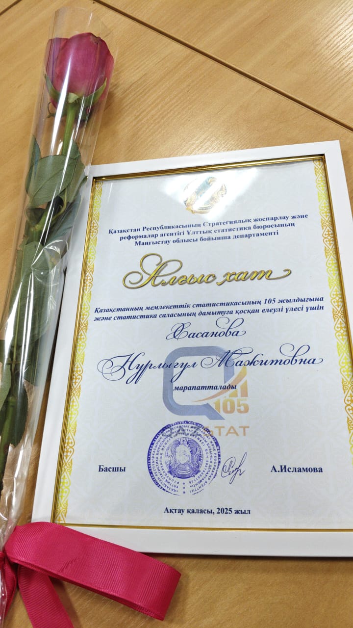 12 қараша күні Қазақстан Республикасының мемлекеттік статистика жүйесінің құрылғанына 105 жыл толуына орай «МӨЭК» АҚ электр энергиясын талдау және өткізу бөлімінің бас маманы Хасанова Нұрлыгүл Мәжитқызы саланың дамуына қосқан үлесі үшін құрмет грамотасына ие болды.
