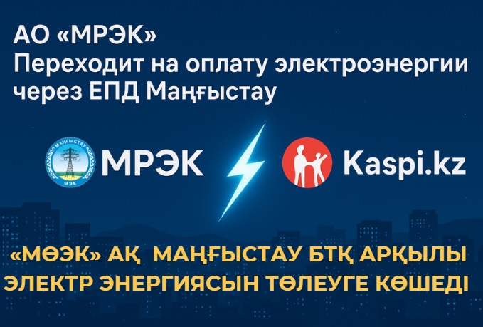 «МӨЭК» АҚ KASPI.KZ МАҢҒЫСТАУ БТҚ АРҚЫЛЫ ЭЛЕКТР ЭНЕРГИЯСЫН ТӨЛЕУГЕ КӨШЕДІ