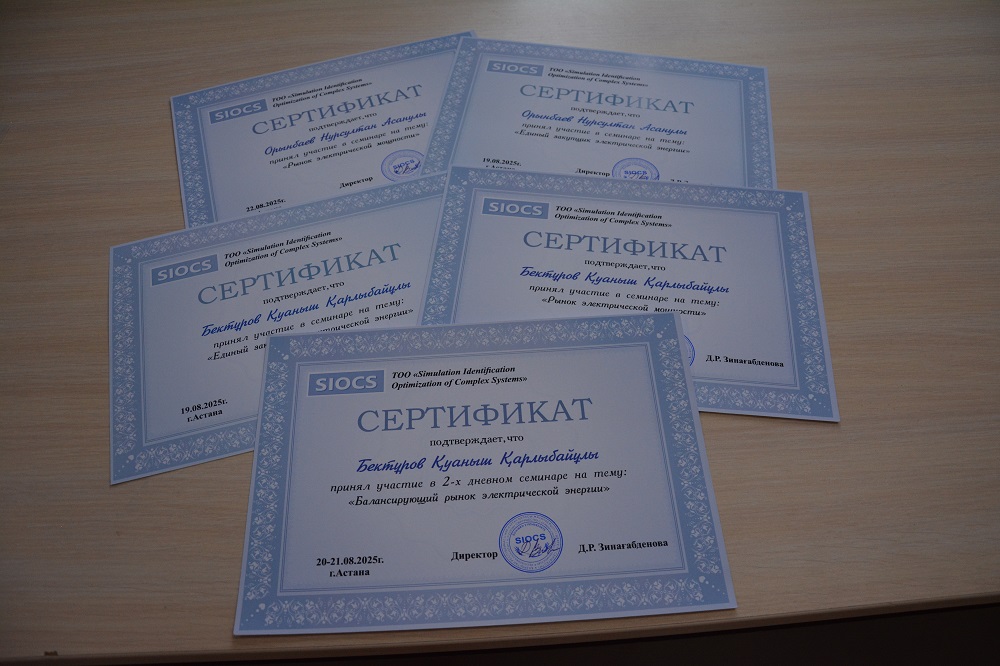 Астанада «Simulation identification Optimization of Complex Systems» ЖШС ұйымдастырған салалық семинар өтті. Қатысушылардың назарында электр энергиясы нарығын дамытудың негізгі бағыттары: Бірыңғай сатып алушының рөлі, теңгерімдеуші нарықтың жұмыс істеуі және электр қуаты нарығы болды. Аталған іс-шараға коммерциялық диспетчерлеу қызметінің мамандары Нұрсұлтан Орынбаев пен Қуаныш Бектұров қатысты.