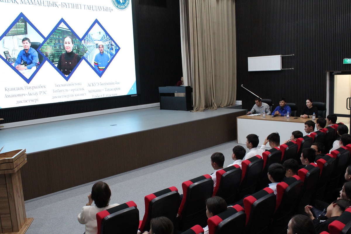 Жоғары сынып оқушыларының алдында электр энергиясын бақылау және есепке алудың автоматтандырылған жүйелері бөлімінің бас маманы Ербол Тауасаров, орталық диспетчерлік қызметінің аға диспетчері Бибігүл Бесмағамбетова және Ақтау АЭЖ диспетчері Наурыз Қуандық сөз сөйледі. Олар энергетиктердің жұмысы қалай ұйымдастырылғаны, мамандықта қандай білім мен дағдылар қажет екендігі туралы айтып, жеке тәжірибелерімен бөлісті.