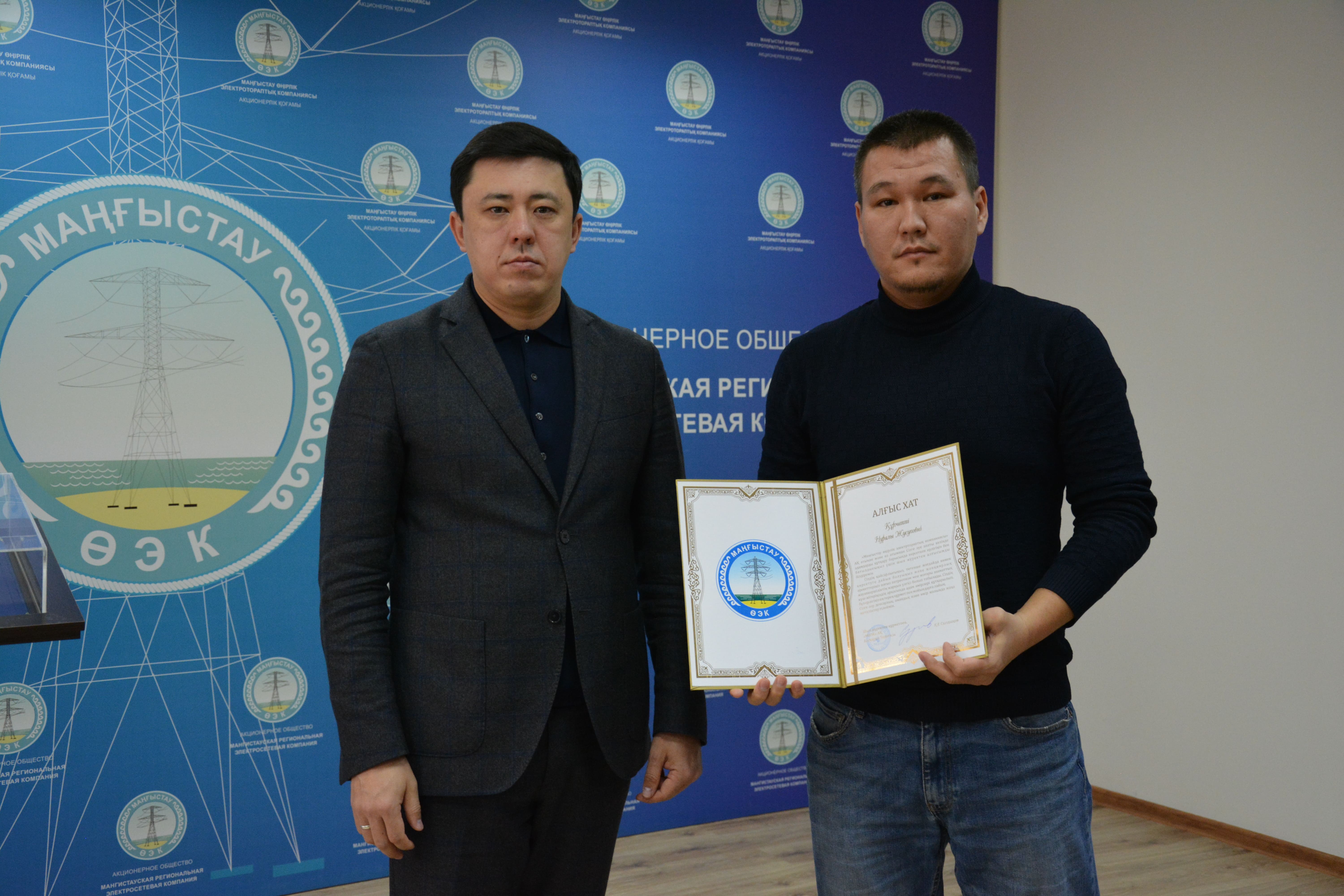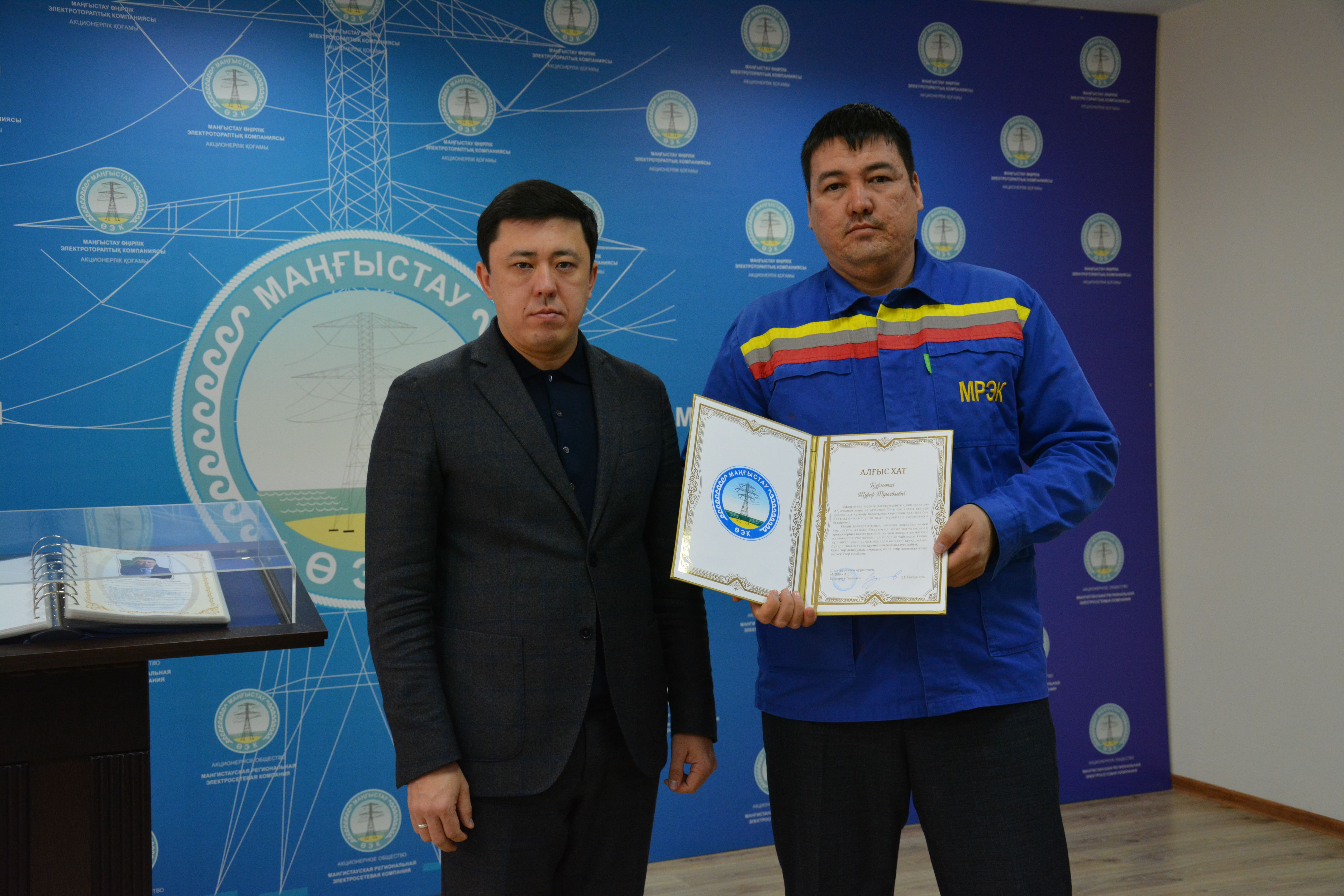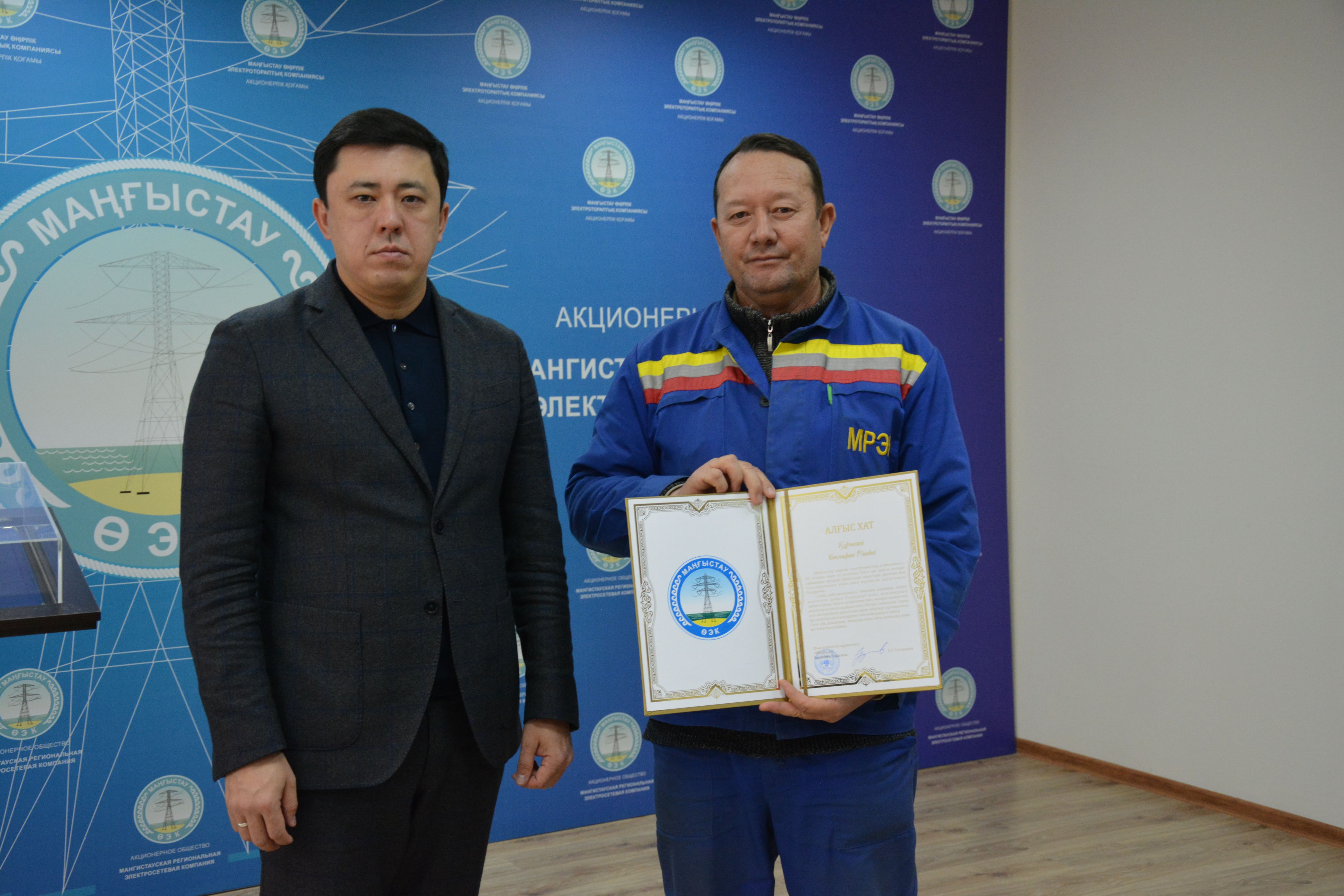 Энергетиктер өздерінің баға жетпес үлестері үшін алғыс хаттармен және ақшалай сыйақылармен марапатталды.